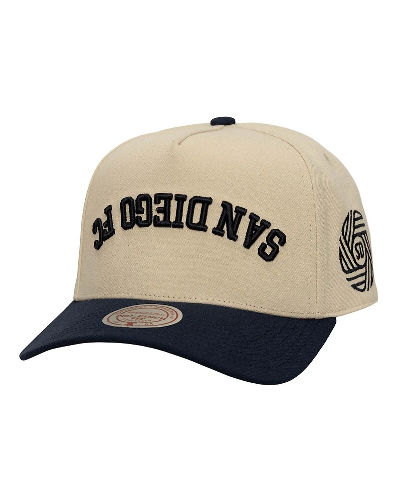Mitchell & Ness Men's Cream/Navy San Diego Fc Upside Down Pro Pinch Snapback Hat