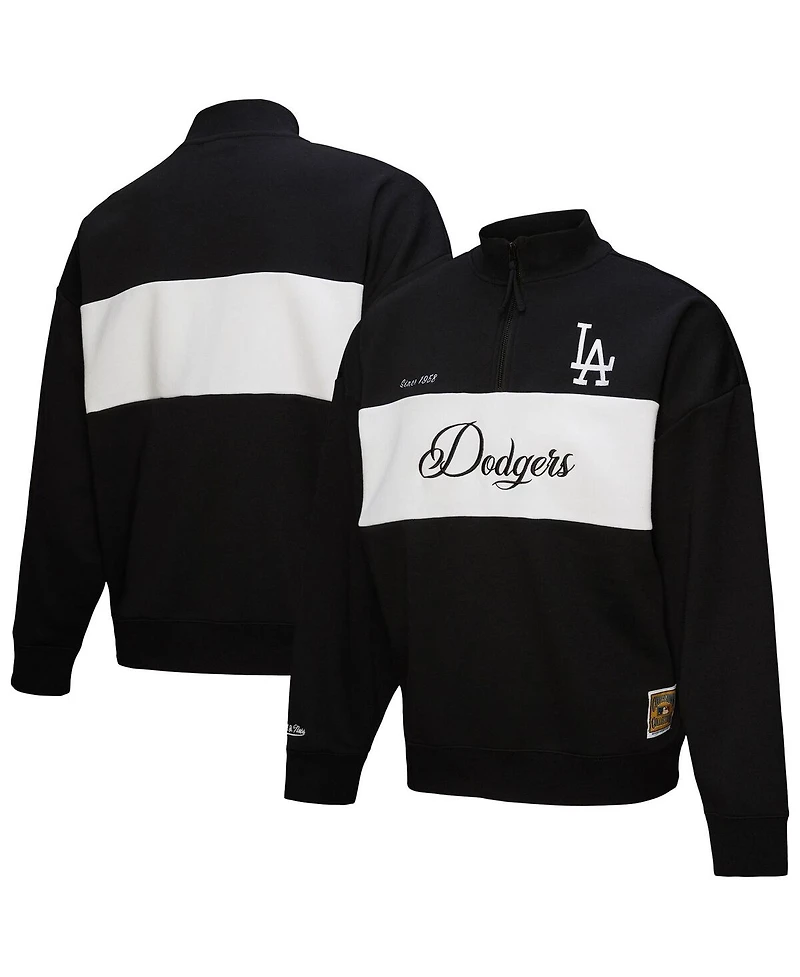 Show off your Los Angeles Dodgers pride with this stylish Mitchell & Ness Quarter-Zip Pullover Top. It features embroidered Los Angeles Dodgers graphics and a thick solid stripe across the chest for a timeless look and a touch of team spirit. Made with a blend of cotton and polyester, this midweight pullover provides a cozy layer of warmth that's perfect for moderate temperatures.