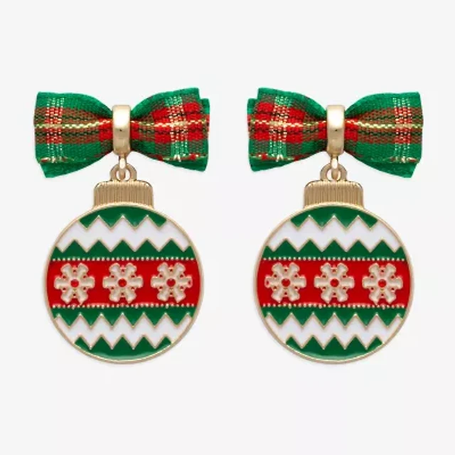 Mixit Holiday Bow And Ornament Multi Color Glass Stainless Steel 22.4mm Stud Earrings