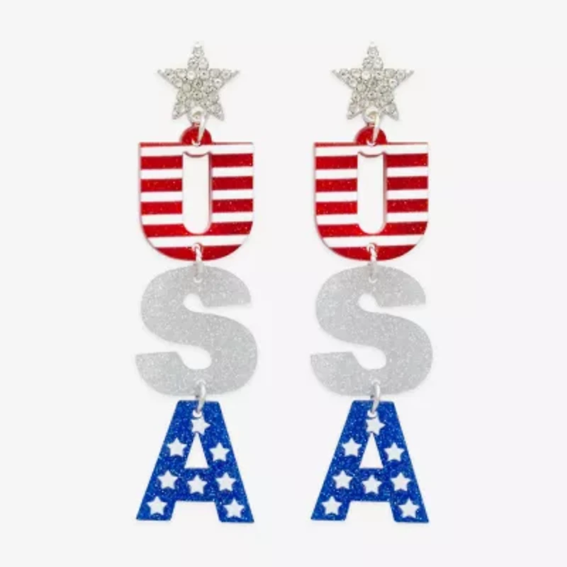 Mixit Patriotic Usa Flag Womens Star Drop Earrings