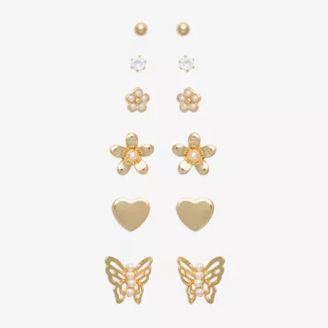 Mixit Womens Cubic Zirconia Butterfly Flower Heart Hypoallergenic 6 Pair Earring Set