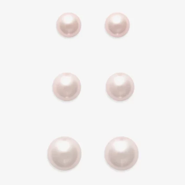 Mixit Womens Pink Glass Simulated Pearl Hypoallergenic 3 Pair Earring Set