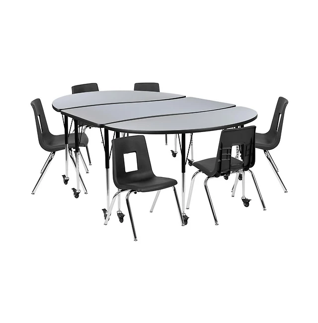 Mobile 86" Oval Wave Collaborative Laminate Activity Table Set With 16" Student Stack Chairs