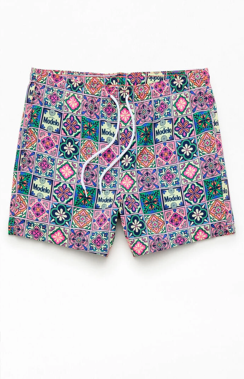 Make it a summer of fun with the Modelo Tile 5" Swim Trunks. These swim trunks feature an elastic stretch waistline, side pockets, a mesh lining, and a Modelo tile pattern throughout.