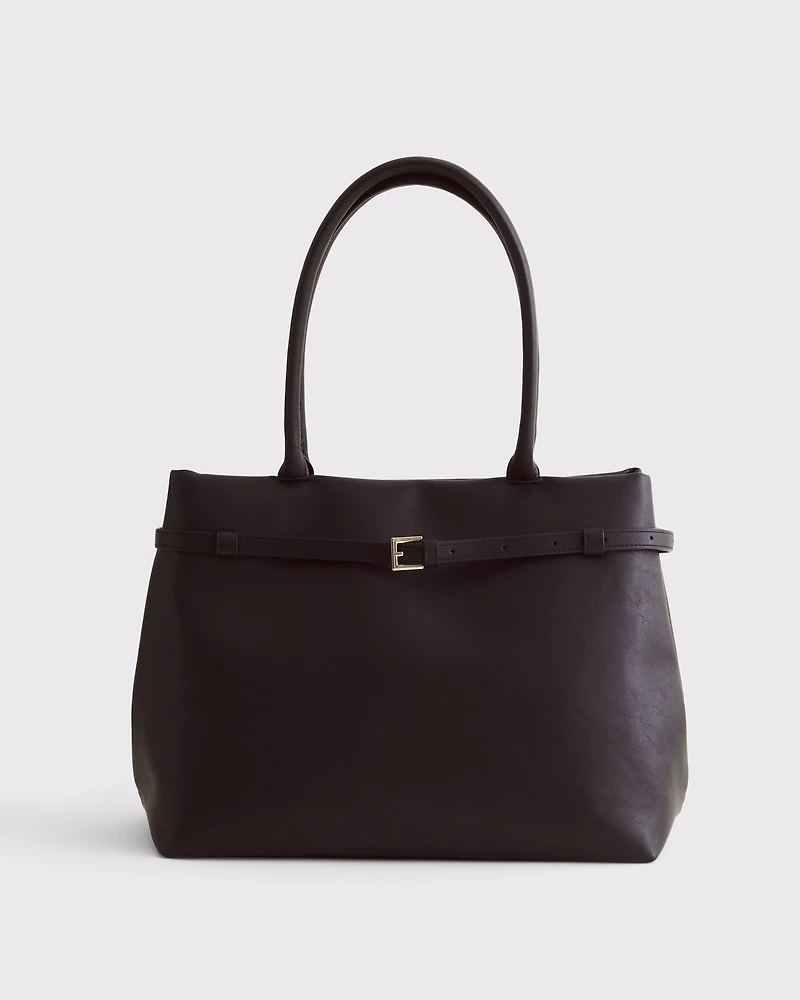 Our new city tote in a soft vegan leather fabric, designed with a belted hardware detail that adds an elevated look and an expandable bag option for added room. Features one internal zip pocket, two internal non-zip pockets and a magnetic button clasp. A versatile carry-all that transitions easily from work to weekend.