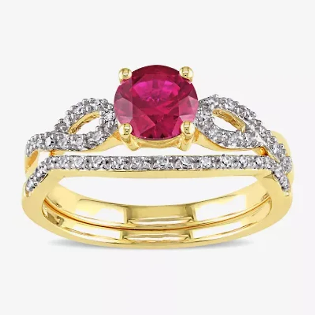 Modern Bride Gemstone Womens 1/7 CT. T.W. Lab Created Red Ruby 10K Gold Side Stone Bridal Set