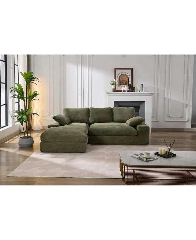 Streamdale L-Shape Modular Sofa Minimalist Corduroy Couch with Sleeper for Compact Living