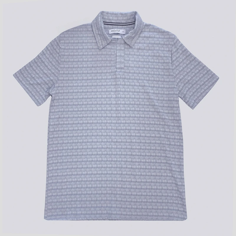 Mojito MSC-5001 es una camisa polo de manga corta con un diseño moderno y textura sutil. Su tejido en tonos gris plateado (silver) presenta un patrón minimalista que aporta elegancia sin esfuerzo. Ideal para un look casual refinado con un toque contemporáneo.