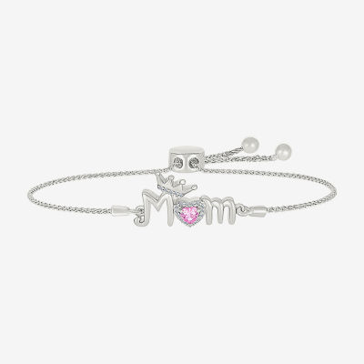 Mom Womens Diamond Accent Lab Created Pink Sapphire Sterling Silver Crown Heart Bolo Bracelet