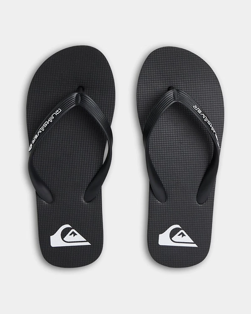Features:- Flexible 3 point synthetic rubber strap with Quiksilver wordmark and fine mold Mountain Wave logo.- Slip resistant textured footbed.- Pop color pin lines in sidewall tying into colorway.- Re-engineered blown rubber outsole incorporates multi angled logo lugs for added traction.