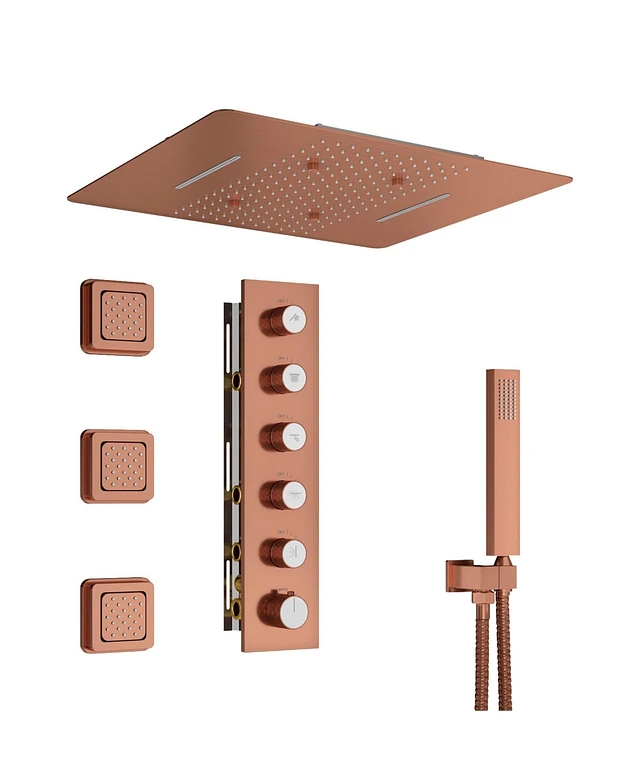 Mondawe Thermostatic Flush Ceiling Mounted Complete Shower System with Led Lights, Body Jets and Slide Bar