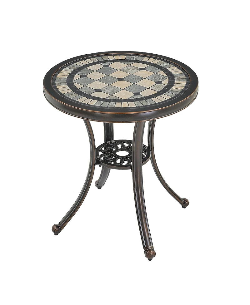 This outdoor round table features a high-quality cast aluminum construction that reduces the risk of rust. Table top bearing strong, waterproof, sun protection. In addition,design with an umbrella hole is more practical. It is the perfect complement and the best choice for your outdoor activities.