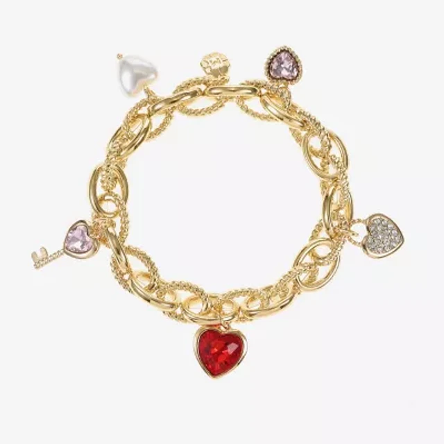 Jessica Simpson Womens Heart Charm Bracelet - Gold-Tone Charm Bracelet with Rhinestone Embellishments