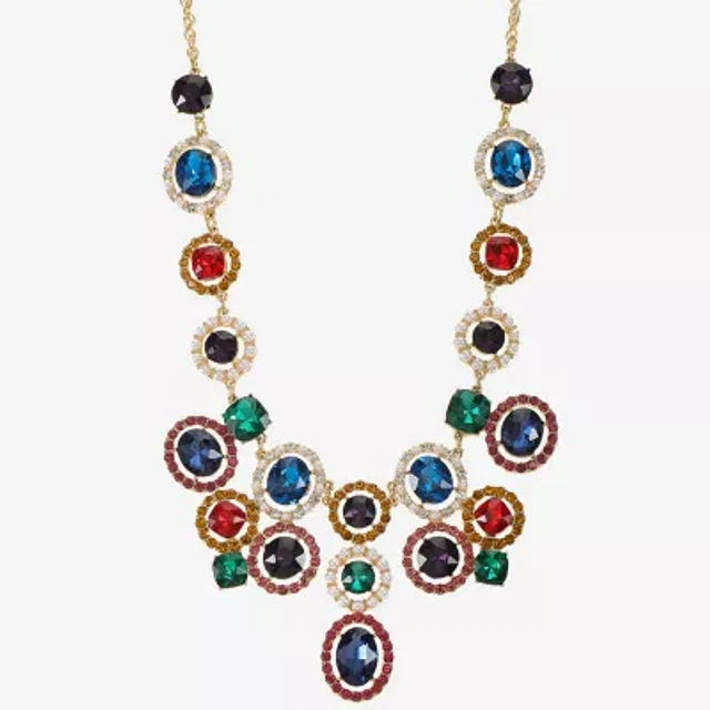 Monet Jewelry Gold Tone Womens Multi Color 18 Inch Statement Necklace