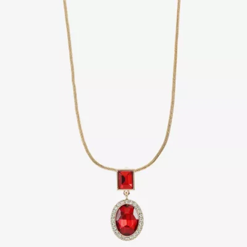 Monet Jewelry Halo Womens Glass Oval 17 Inch Pendant Necklace