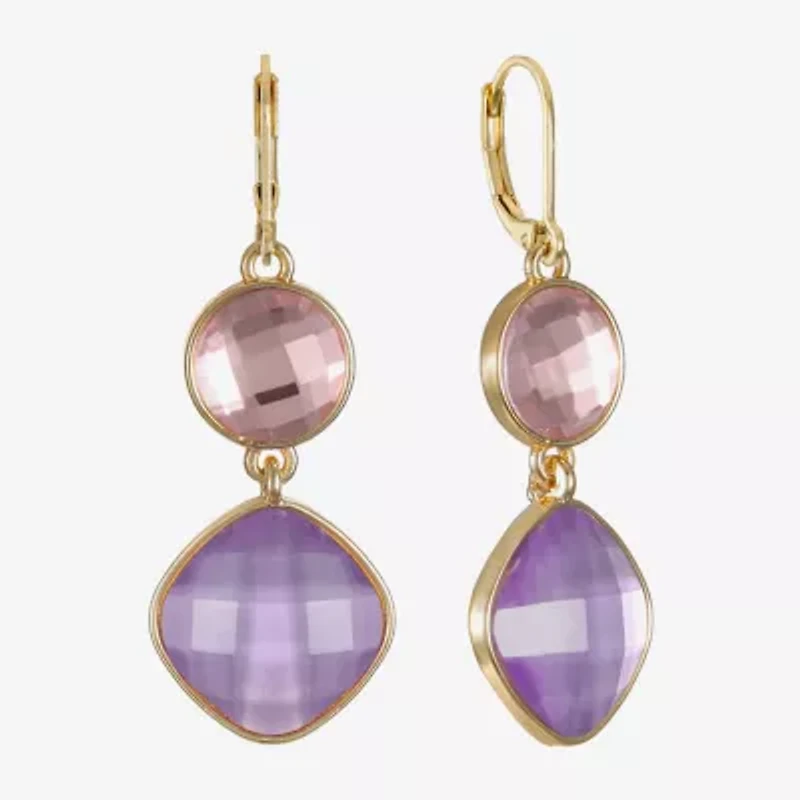 Monet Jewelry Womens Pink Glass Round Cushion Drop Earrings