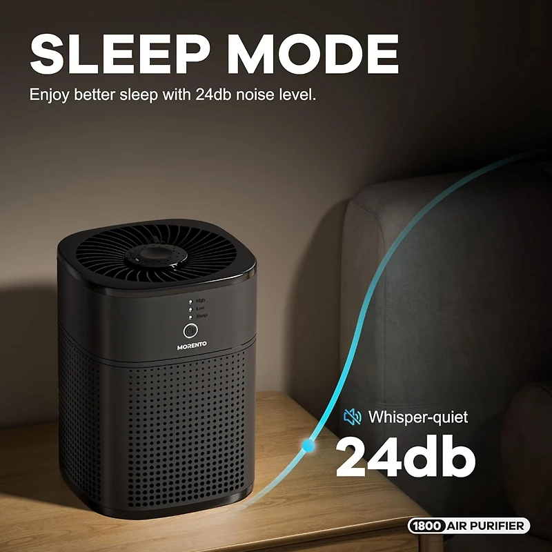 Morento Air Purifiers for Bedroom, Room Purifier Hepa Filter Smoke, Allergies, Pet Dander, Small with Sleep Mode, Black and White