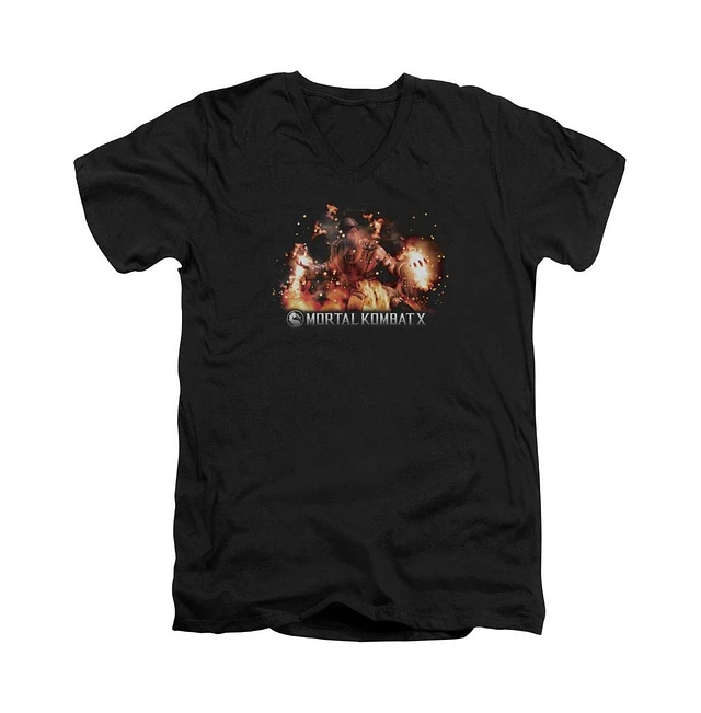 Mortal Kombat X Men's Scorpio Flames Short Sleeve Adult V Neck Premium Cotton Tee / T-Shirt