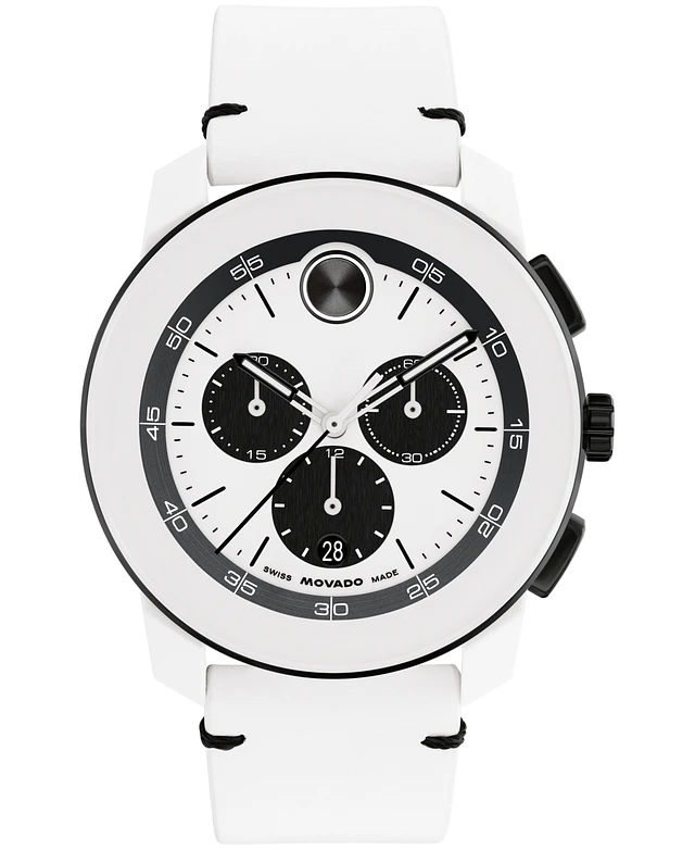 Movado Men's Bold Tr90 Swiss Quartz Chrono White Leather Watch, 43.5mm