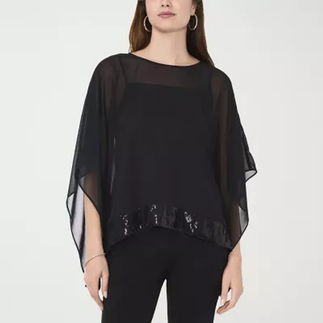 MSK Cape Womens Round Neck Short Sleeve Embellished Blouse