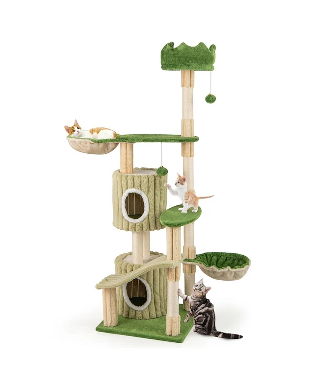 Large Avocado Cat Tree Multi-level Cat Tower with Private Condo