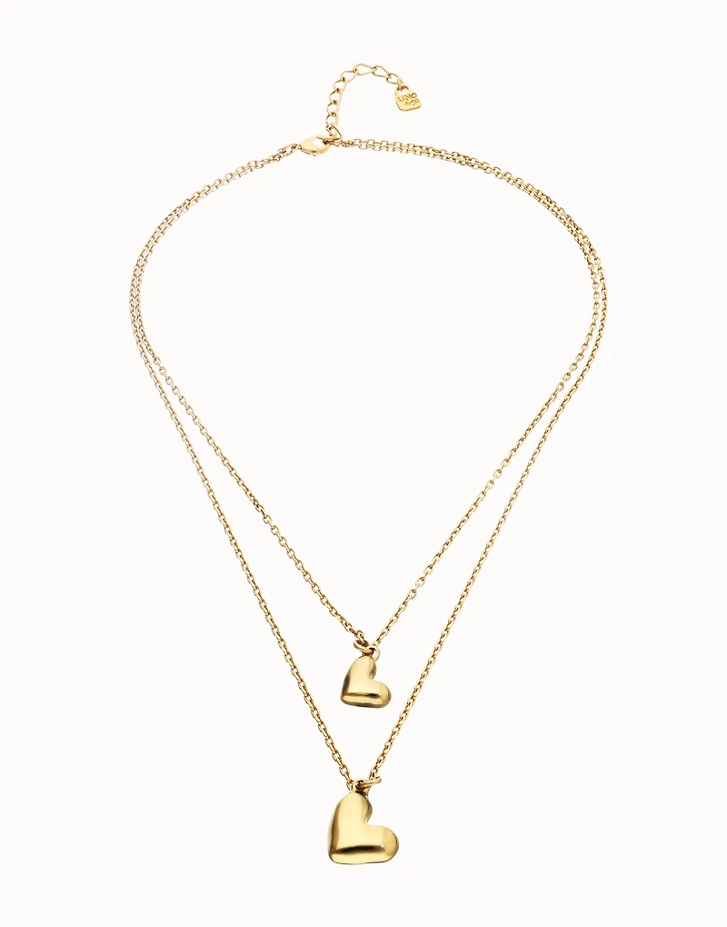 Double necklace with two hearts.When something inside you beats strongly, there is only one way to listen to it: let go. The Beat Collection is a celebration of letting go of the reins and letting your heart lead the way. A handmade heart, imperfect, but real. Because the result of living this way is a heart sculpted with your own hands.
