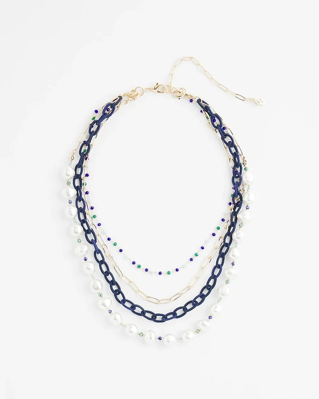 Long Faux-Pearl and Goldtone Double-Strand Necklace