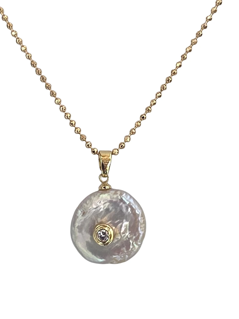 Elegant 18" 25MM pearl disc pendant crafted in hypoallergenic 18K Brazilian goldfilled. This timeless piece combines lustrous pearl detailing with durable, nickel-free construction—ideal for sensitive skin. The delicate disc design offers versatile styling for everyday wear or special occasions. Brazilian goldfilled ensures lasting quality and radiant finish without the premium price of solid gold.