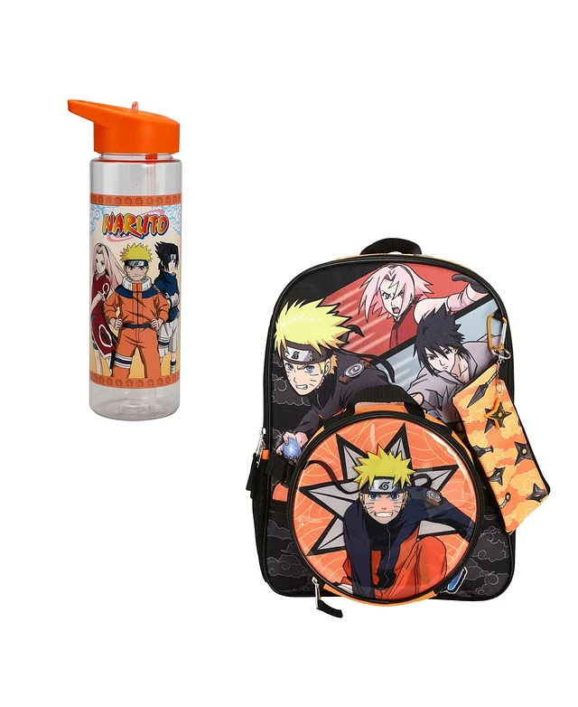 Naruto Main Characters Boy's 5-Piece Backpack Set & 24 Oz Single Wall Water Bottle Combo Set
