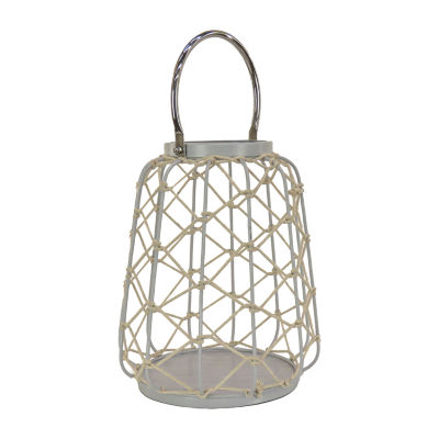 National Tree Co. Candle Rope Weave Glacier Gray Decorative Lantern