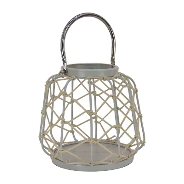 National Tree Co. Candle Rope Weave Glacier Gray Decorative Lantern