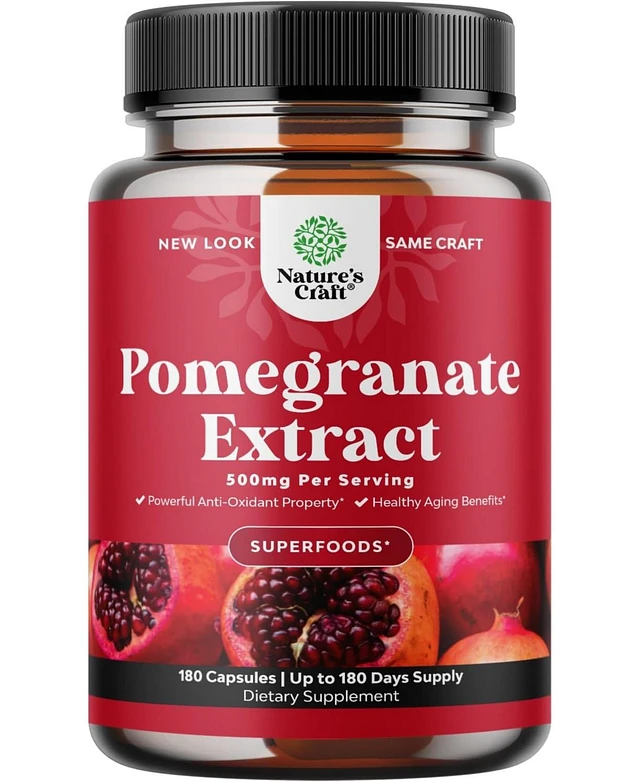 Nature's Craft Pomegranate Extract Capsules, Supplement for Heart Health and Joint Support, Nature's Craft, 180 ct