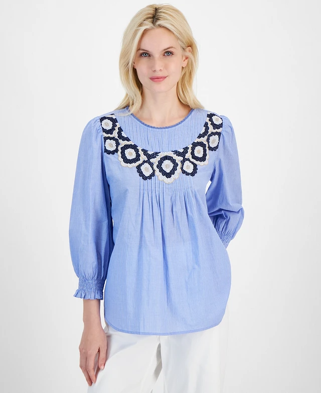 Nautica Jeans Women's Cotton Embroidered Pleated Top