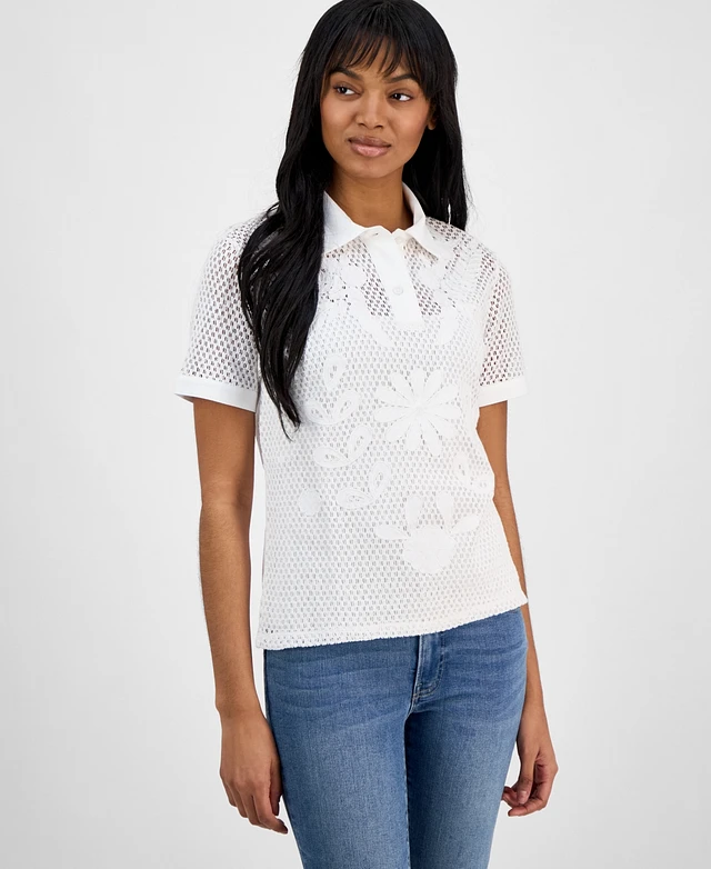 Nautica Jeans Women's Crochet Cotton Polo Shirt