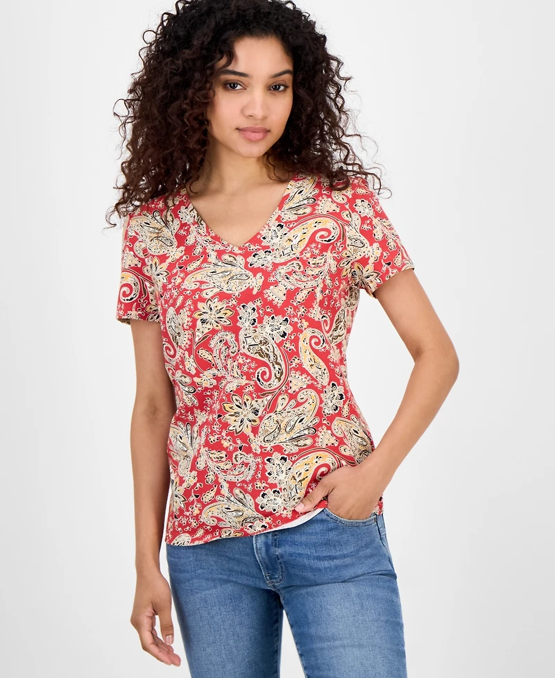Nautica Jeans Women's Paisley-Print V-Neck T-Shirt