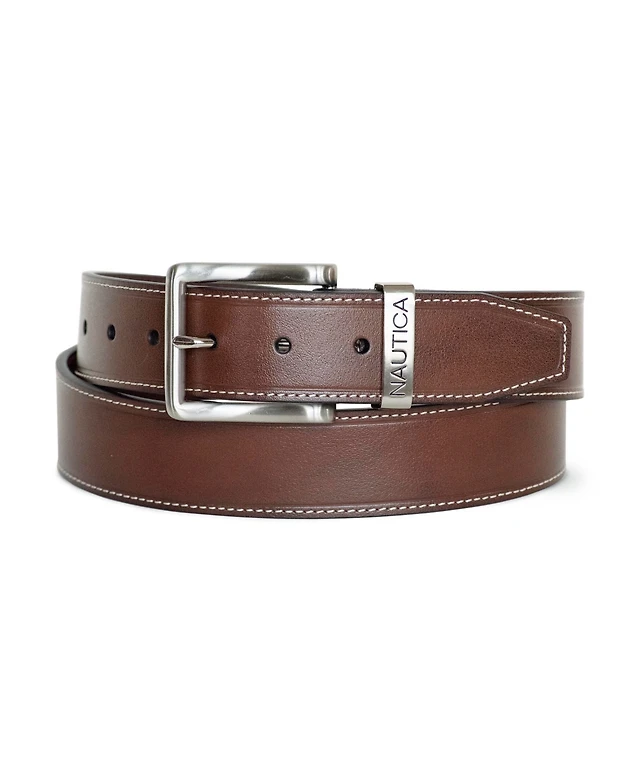Nautica Men's Leather Jean Belt with Signature Engraved Keeper