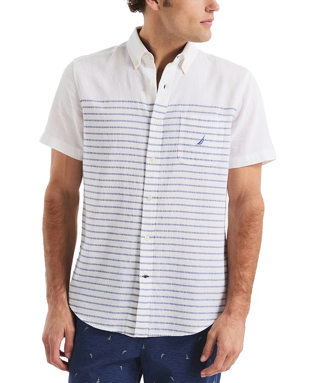 Nautica Men's Short Sleeve Striped Button-Down Shirt