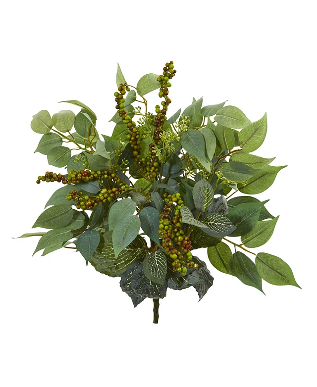 Nearly Natural 14" Mixed Ficus, Fittonia and Berries Bush Artificial Plant (Set of 6)