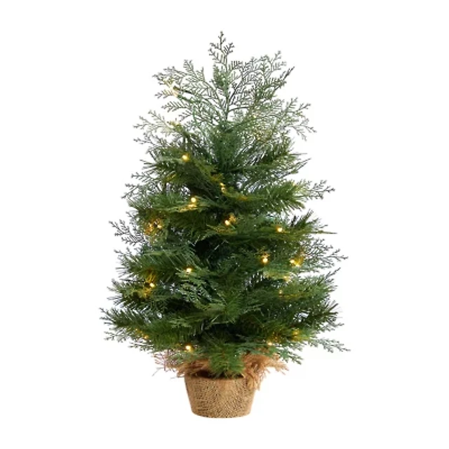 Nearly Natural 2 Foot Fir In Burlap Base With 35 Warm White Led Lights Pre-Lit Christmas Tree
