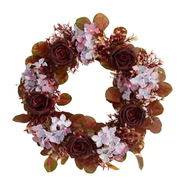 Nearly Natural 22" Fall Hydrangea & Rose Faux Wreath