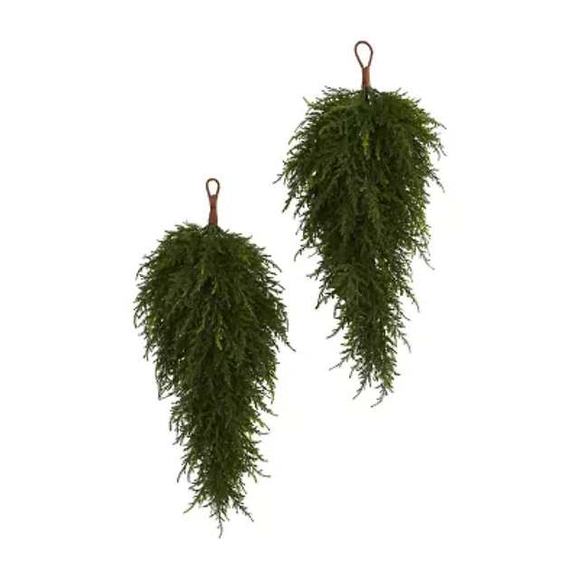 Nearly Natural 26in. Cedar Faux Teardrop Set Of 2 Swag