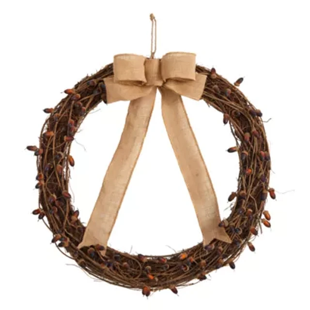 Nearly Natural 30" Fall Acorn And Bow Autumn Wreath