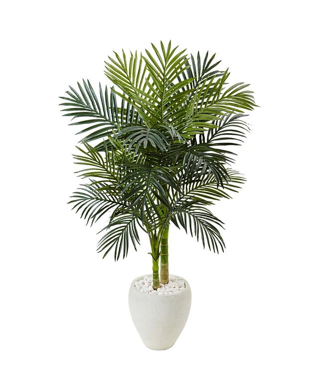 Nearly Natural 63" Areca Palm Artificial Tree in White Planter