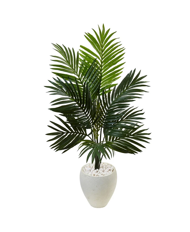 Nearly Natural 63" Areca Palm Artificial Tree in White Planter