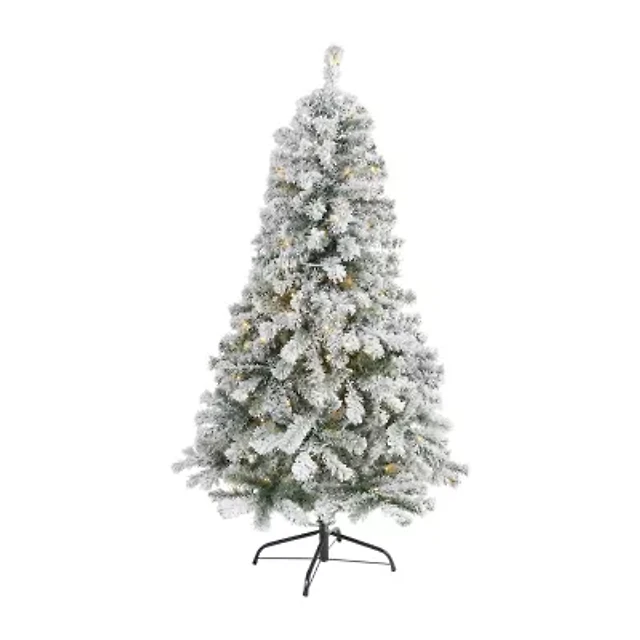 Nearly Natural 5 Foot West Virginia Flocked Fir With 150 Led Lights Pre-Lit Christmas Tree