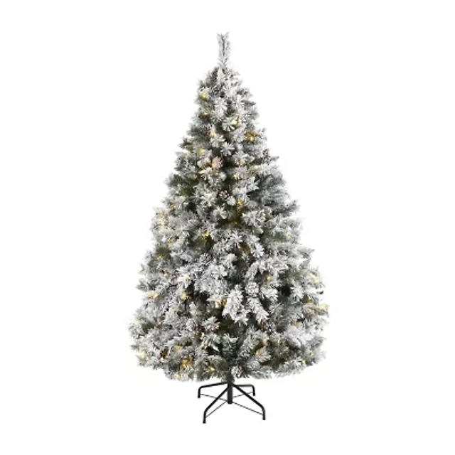 Nearly Natural 6 Foot Flocked Pine Pre-Lit Christmas Tree