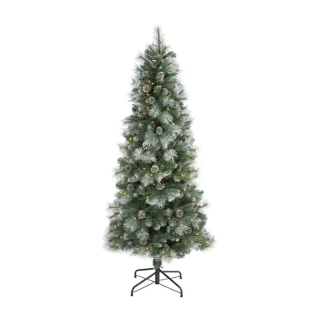 Nearly Natural 6 Foot Frosted Pine With Pine Cones And 588 Bendable Branches And 250 Clear Lights Pre-Lit Christmas Tree