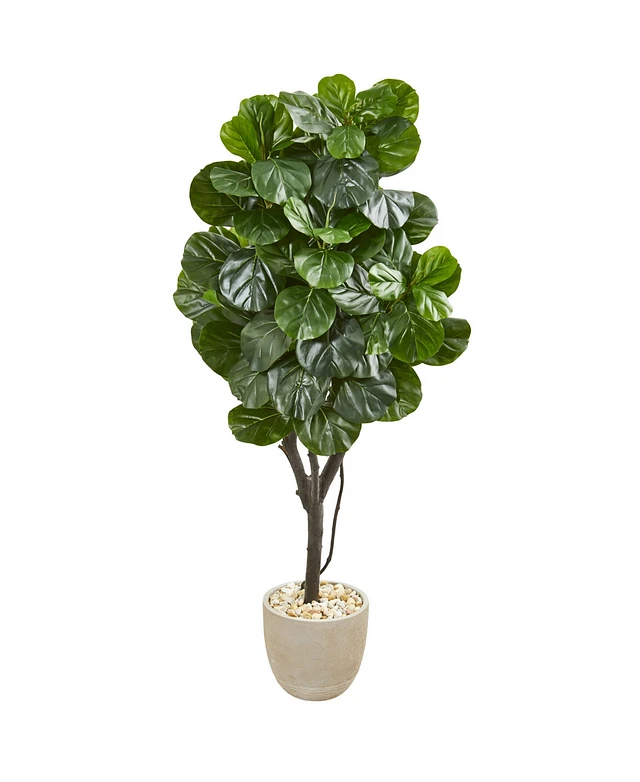 Nearly Natural 67" Fiddle Leaf Fig Artificial Tree in Sand Stone Planter