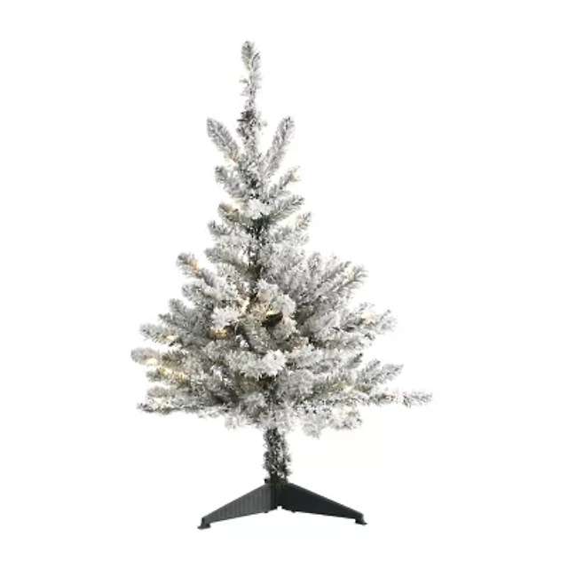 Nearly Natural Flocked 4 Foot Pre-Lit Spruce Christmas Tree