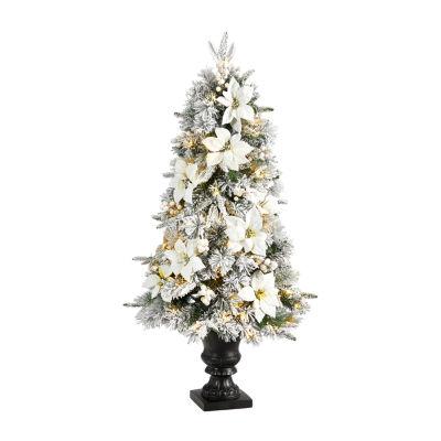 Nearly Natural Flocked Faux 4 Foot Pre-Lit Christmas Tree